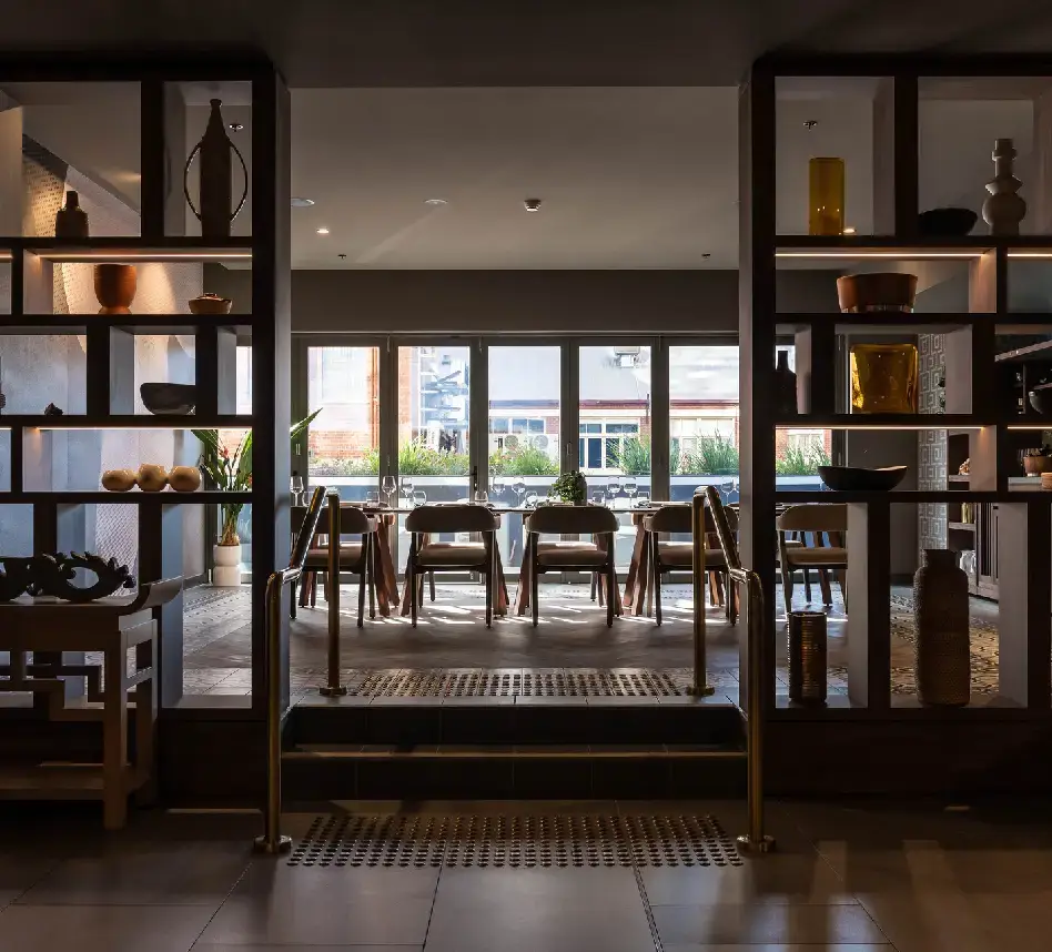 Journey further into the restaurant and settle into plush chairs and banquette seating. Enjoy the abundant natural light and the gentle sound of the fountain in the lily pond. The alfresco and indoor area of the restaurant are ideal for groups of 2-10 people, book online.