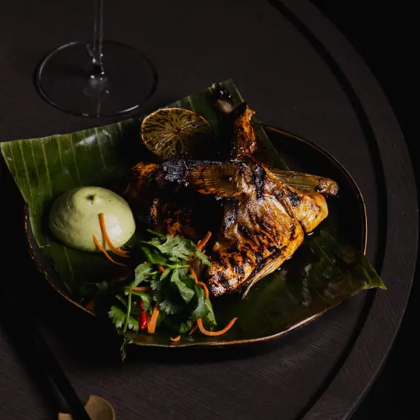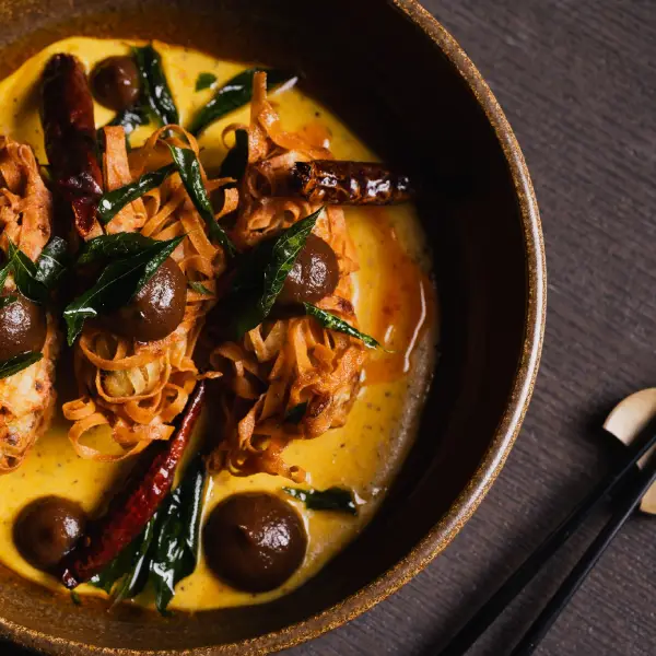 Yuzu-Marinated Hiramasa Kingfish Wings are a vibrant dish utilising the most juicy and tender part of the fish. The citrusy yuzu and soy marinade is balanced with punchy green chilli, coriander and basil purée, annatto curry oil, and our signature pickled vegetables. It’s zesty, succulent and unforgettable.