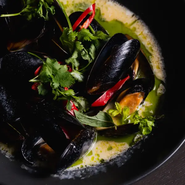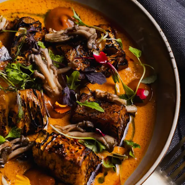 For the seafood lovers, the Whole Fried Market Fish, Spicy Coconut Braised Kale is crispy, golden, and bursting with tropical spice. This dish is a celebration of fresh fish, perfectly complemented by vibrant coconut-braised greens.