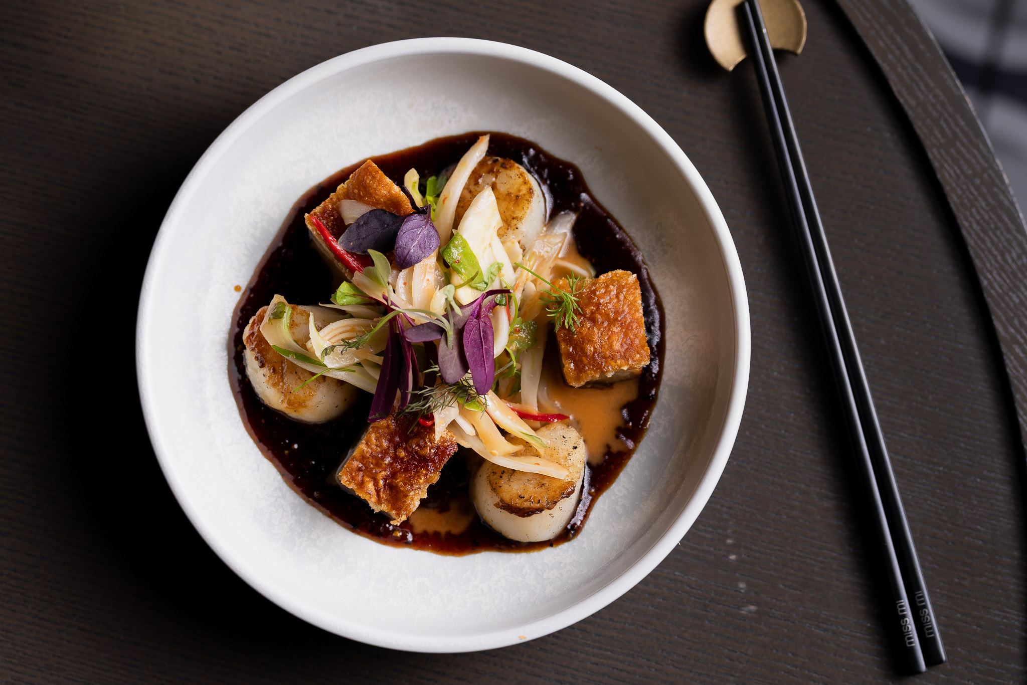 A fresh twist on Singaporean black pepper sauce, famously used for black pepper crab. Instead of crab, Chef Alex combines it with naturally sweet and juicy scallops and crispy pork belly. Topped with a fresh fennel salad for brightness. Punchy, zesty and full of umami, it’s the dish to try this summer.